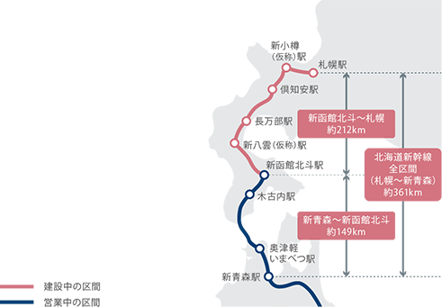北海道と本州を結ぶ新幹線が札幌まで延伸し、札幌~東京が最短4時間半で結ばれます。新幹線の新駅は現札幌駅の東側(苗穂駅側)に誕生し、駅舎や動く歩道、交通広場なども整備され、新たなにぎわいの創出が期待されます。