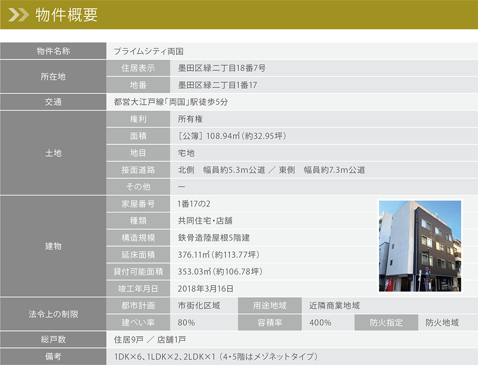 - プライムシティ両国 ※全3物件中1物件のみ記載