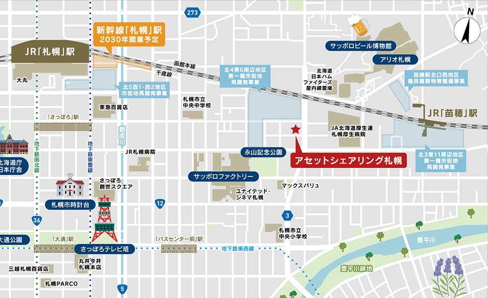 札幌駅も徒歩圏内。優れた交通アクセスとレジャー・ショッピングの利便性、豊かな自然を感じられる好立地が、理想的な暮らしを実現します。